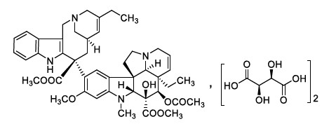 | 【成份】 | 本品活性成份为酒石酸长春瑞滨 化学名称:3’,4’-二去氢-4’-去氧-8’-去甲长春碱二酒石酸盐 化学结构式: